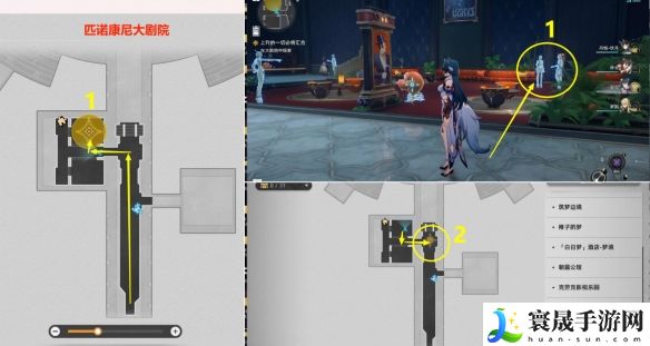 2、上图过完剧情后,会传送到新地图【 匹诺康尼大剧院 】,去1和2任务点过剧情。