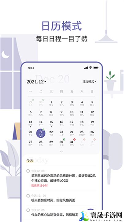- 通过日历可查询未来需要待办的事项或任务,了解当天或一周的工作情况。