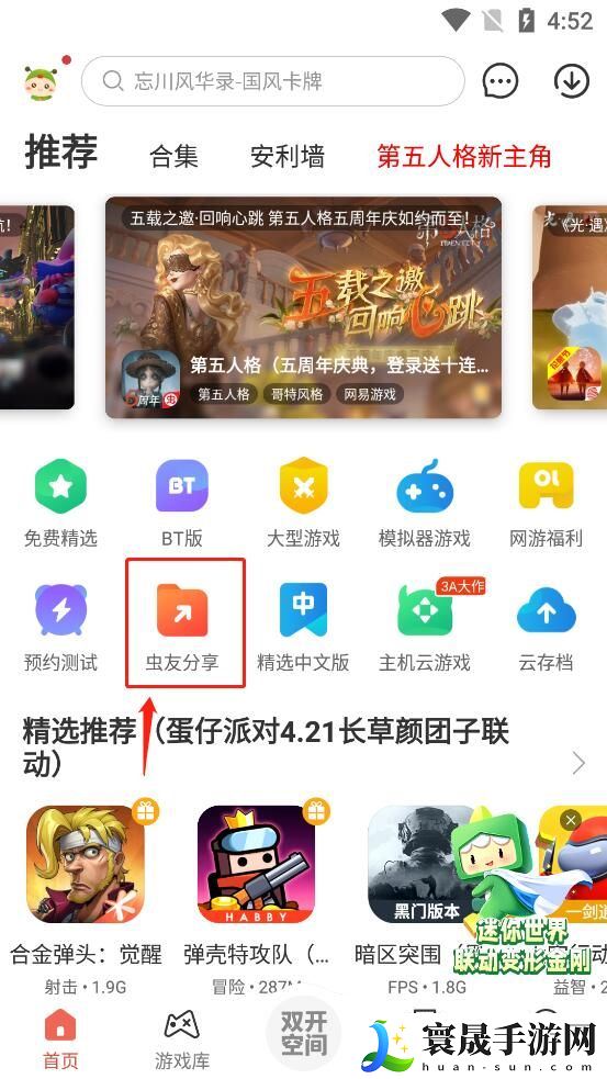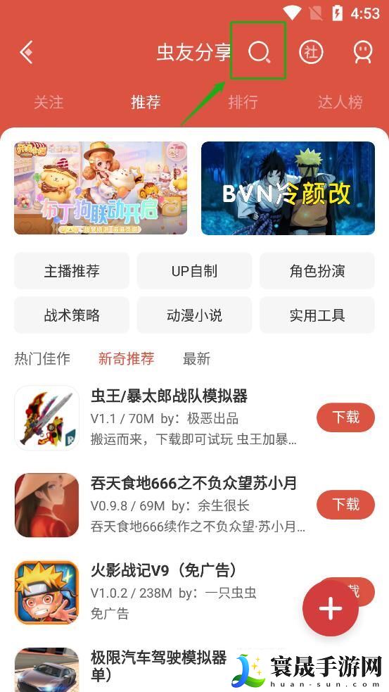 1、首先从本站下载虫虫助手app,安装成功后打开首页,点击“虫友分享”