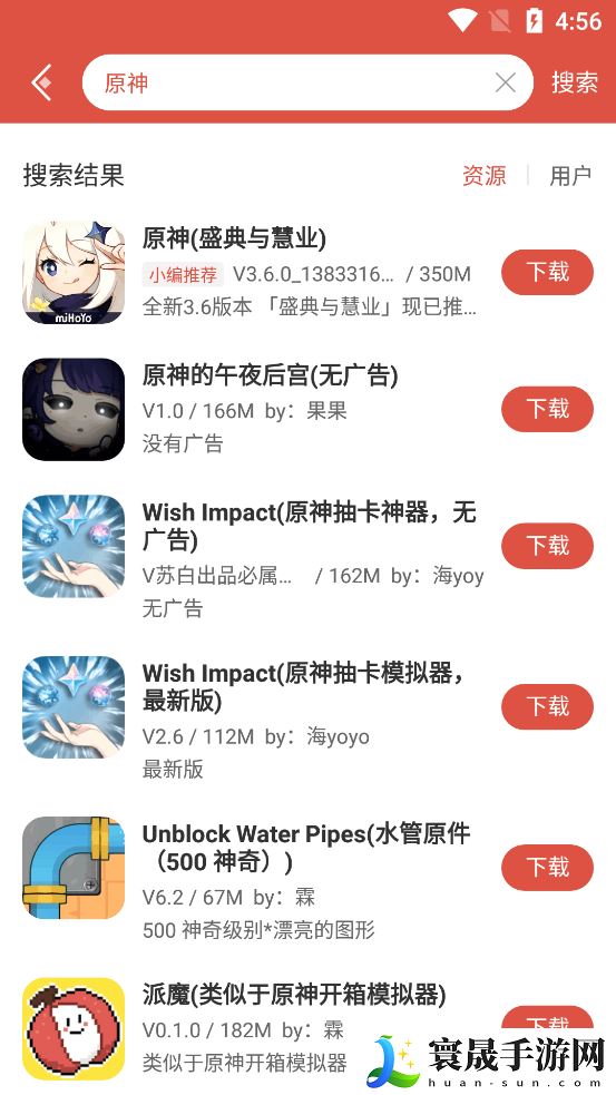 4、如小编示范的原神,搜索后即可出现多种版本的原神