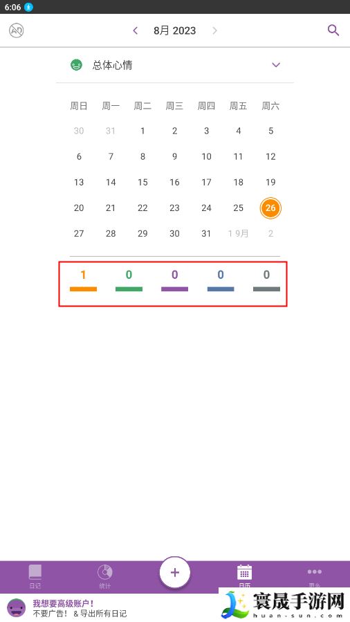 4、然后我们来到“统计”,在这里我们可以看到“每月情绪图”,“成就”,“情绪数量”等等。