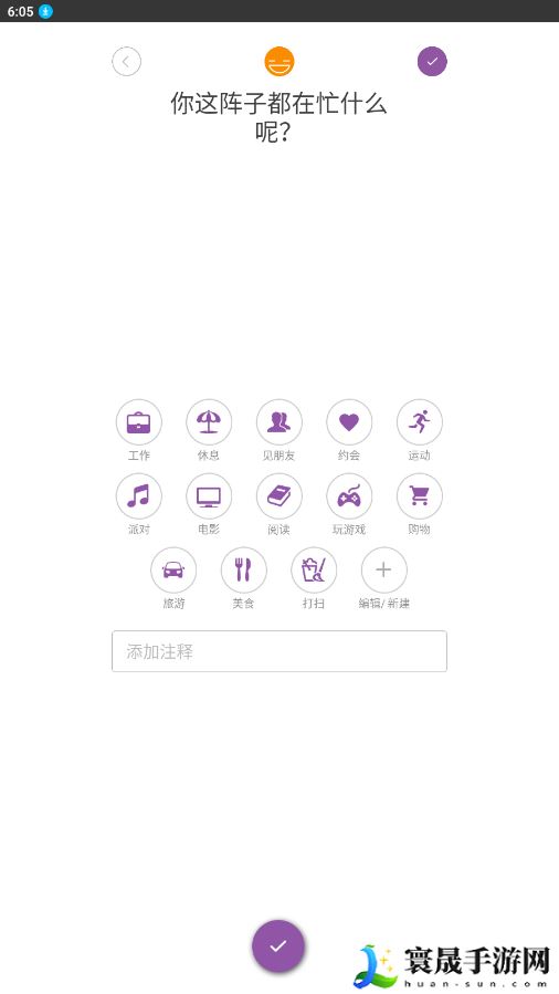 4、只需选择与当天心情相匹配的表情和活动图标,即可创建日记,界面设计温馨友好。