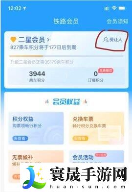 2、点击会员页面右上角的【受让人】,添加后才可以让受让人使用积分兑换车没孝膨票。