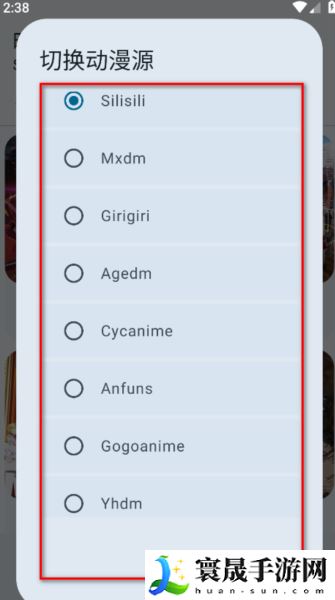 8、这里支持切换动漫源、外观设置、弹幕设置等功能。以切换动漫源为例,点击该选项。