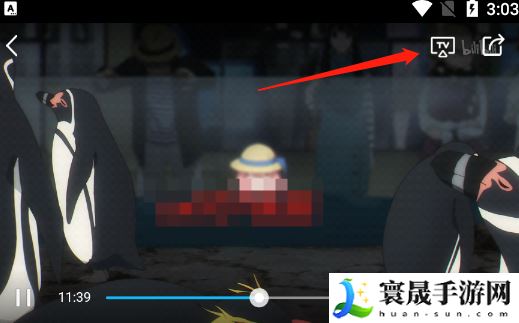 2、在视频播放界面,点击右上角【TV】按钮,在选项页面中点击【投屏】按钮;