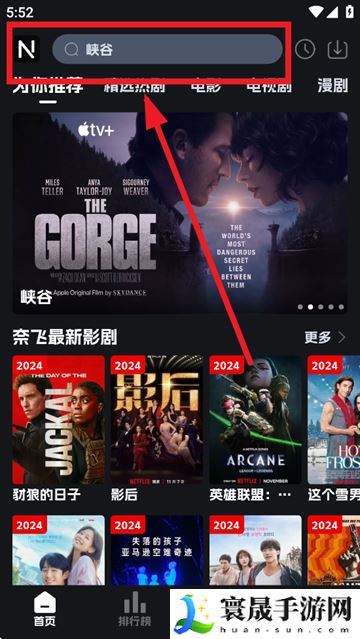 下载安装并打开奈飞工厂app,进入主页后可以根据推荐直接点击进入观看,也可以在上方搜索栏搜索想要看的影视。