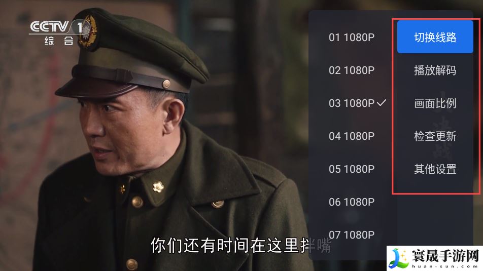 3、任意点击播放界面,支持切换线路,播放解码,调节画面比例,以及检查更新功能。