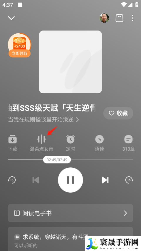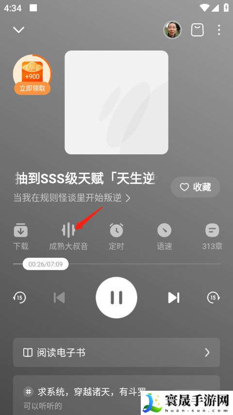 2、第二步在听书界面点击成默认音调成熟大叔音。