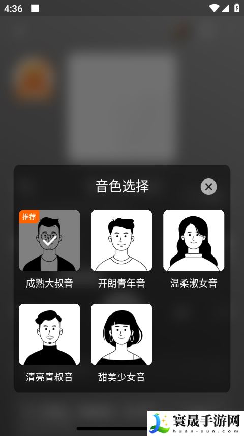 3、第三步,这里有不同的音色选择,任选一个自己喜欢的声音,这里我选择温柔淑女音。