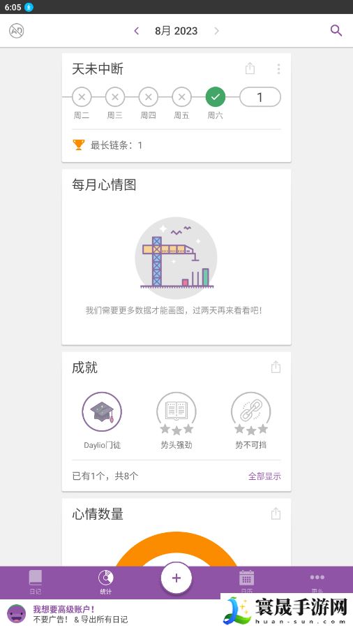 4、然后我们来到“统计”,这里能够看到“每月心情图”、“成就”、“心情数量”等等。