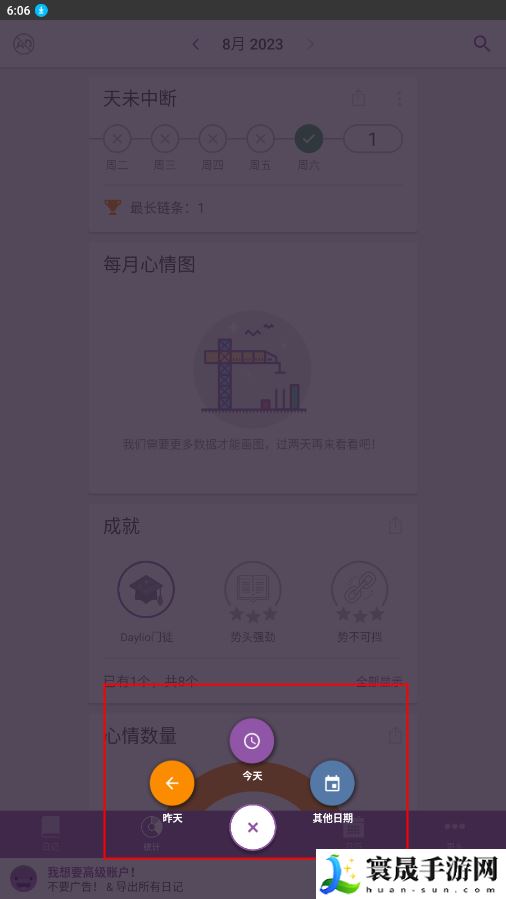 4、然后我们来到“统计”,这里能够看到“每月心情图”、“成就”、“心情数量”等等;