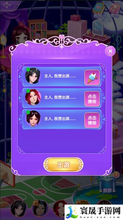 3、当然,在《叶罗丽美颜公主》中,娃娃屋里最大的特色就是旅游啦~所有已解锁的娃娃都可以进行“旅游”。不过,在让娃娃出去旅游之前,你需要帮她们准备好旅行途中的各种物品。