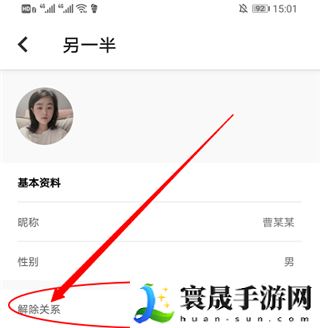 3.在另一半界面,点击下方的解除关系进行解除。