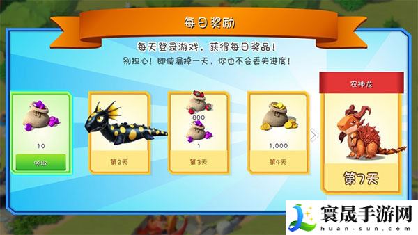 1、每日奖励:每天登陆都会有额外的奖励,登录满7天以后会得到稀有的龙哦。