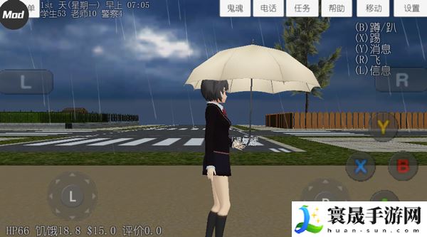 玩法:你是爱跷课的坏学生,一次心血来潮去学校上课,想不到缺课太多,校长广播要把你抓住并惩罚,3-4名老师开始抓你,你只能跑,只能在特定地方瞬移且不能飞行(短时间飞行可以,视为跳跃),而且还有特定日常的事要做,必须撑过一天才能成功。你只能到自家,视听教室,花园,游泳池,图书馆和女仆咖啡厅这几个地方才能瞬移,不能瞬移到山上或海上,可以投降,到花园拿武器将老师全杀掉即可投降,可以用设定或其他暂停游戏查看任务。