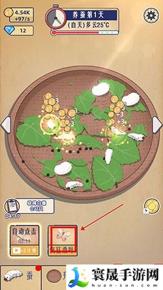 4、随着时间的流逝,蚕宝宝会开始化茧,这时只要点击它即可。