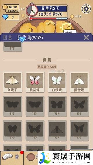 5、点击后,蚕宝宝会化成不同的蝴蝶与造型,尝试解锁所有的品种吧。