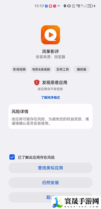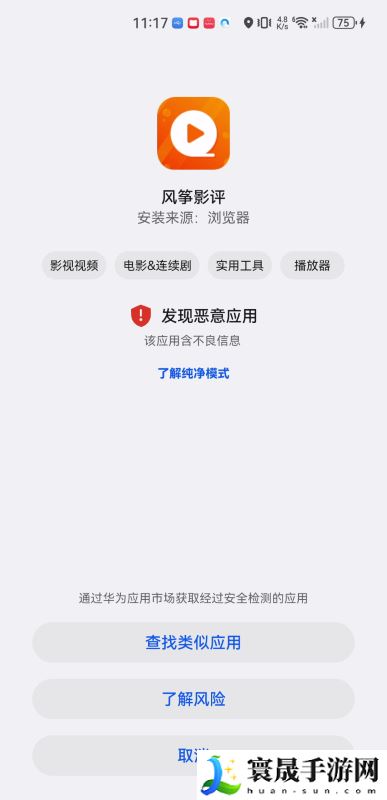 2、系统发现恶意应用,可能是误判,需要点击“了解风险”。