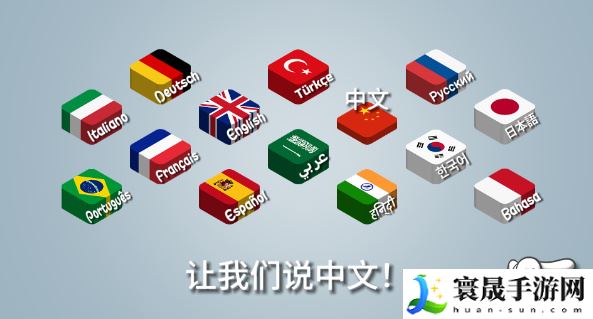 1.进入游戏之后能够选择语言,点击右下角的小手来进入游戏主界面。
