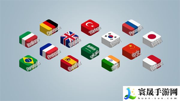 1、打开游戏可以看到许多国旗和文字。