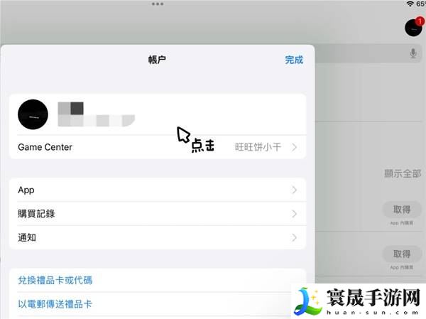 1.打开App Store,点击右上角头像。点击个人信息框。