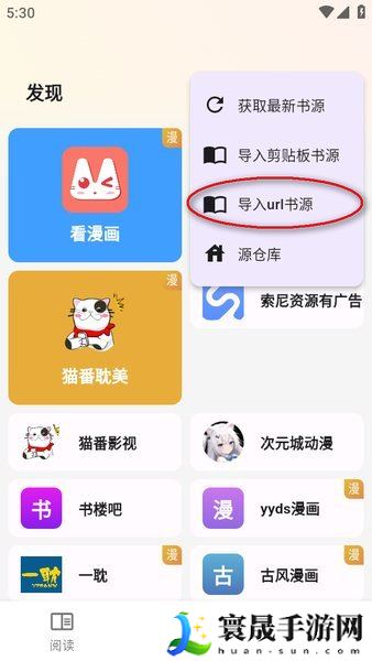 3、如果自动获取的书源不满意,也手动导入书源,点击右上角的三个点击,选择“导入url书源”;