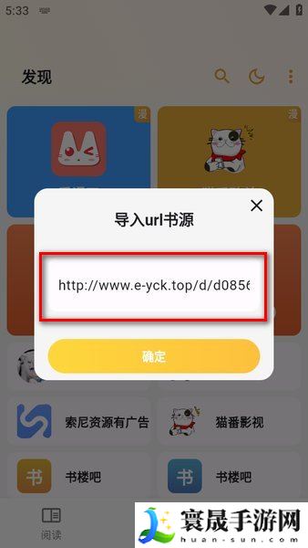 1、进入app之后,首页选择“发现”,点击“获取书源”;