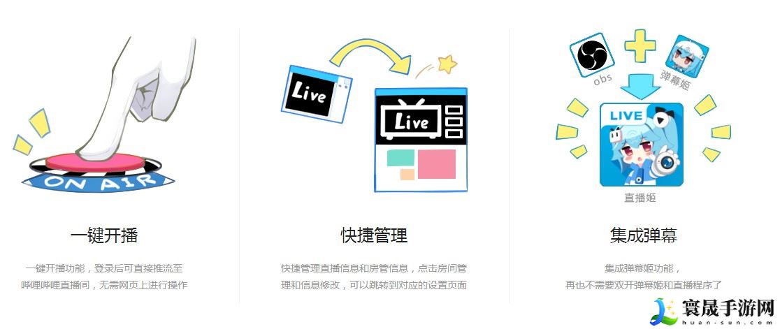 一键开播功能,登录后可直接推流至哔哩哔哩直播间,无需网页上进行操作。