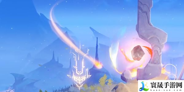 7、接着在浮岛上调查镌光铭印,然后调查岛上巨大的石碑开启试炼