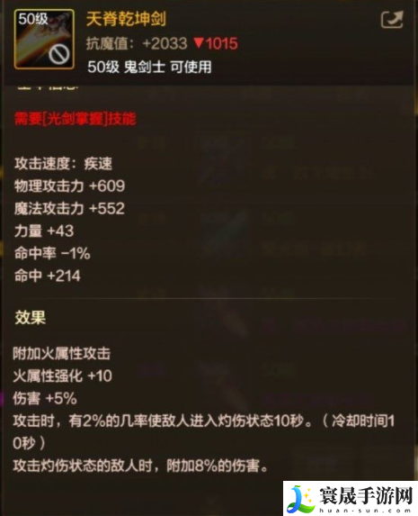 附加火属性攻击、火属强+10伤害加5%,2的概率敌人进入灼伤状态、