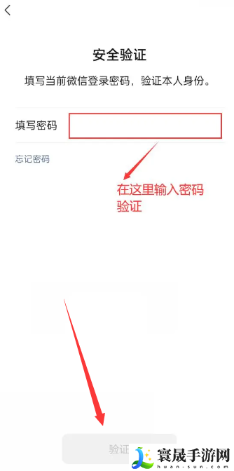 4、进入安全验证界面,填写微信登录密码,点击验证按钮。