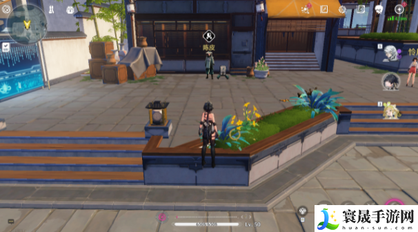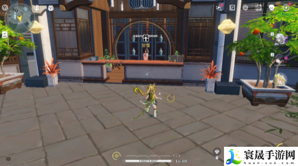 1、来到今州城下方传送锚点,在如图所示位置落地直行跳下去,进入纪念品商店找到老板娘甘雪。