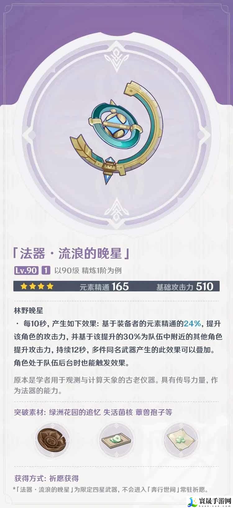 原神流浪的晚星适合谁呢?流浪的晚星是原神中的一把武器,很多玩家想知道流浪的晚星适合什么角色,所以下面小编为大家带来了原神流浪的晚星适用角色推荐,一起来看看吧!