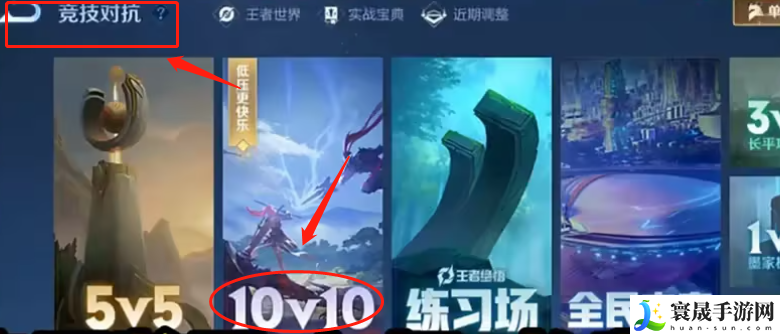 答:王者荣耀-游戏大厅-竞技对抗-10V10模式