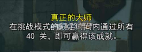 4.真正的大师,这个是在挑战模式里面有规定的时间完成四十关就可以了,这个就是建议玩家使用普通模式来进行通关,这样的话我们会感觉过关没有压力,不然困难模式很难顺利通关四十关。