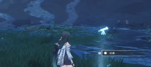 2、到达目的地后,就可以在湖边看到望远镜,来到望远镜旁边点击记录。具体位置如图所示。