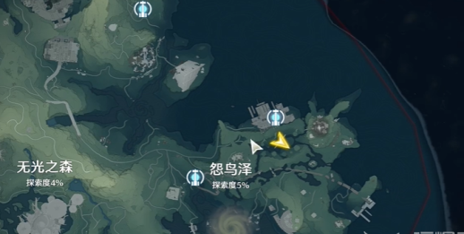 1、进入游戏后,来到下图标记的位置在这里完成拍摄,在怨鸟泽右上角位置。