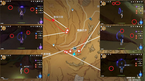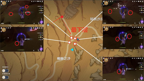 说明:分布在地下区域,从图中秘境处出发。注意材料的闪光点,更加容易找到。注意此处采集完后无需出地面。