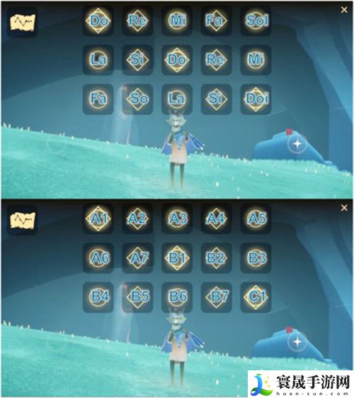 1、光遇琴谱键位展示:上下两天的按键位置一一对应,do、re、mi分别对应A1、A2、A3,从A1到B3是do、re、mi第一句结尾的全部键位;