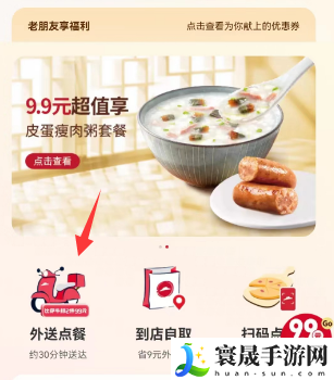 2、进入应用以后,根据自己的需求选择外卖点餐、到店自取、扫码点单等。