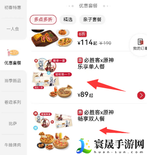4、选择好预约时间以后,开始进入点餐页面,在优惠套餐栏目找到原神联动套餐。