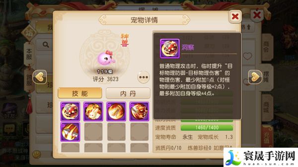 作为物理系顶级输出神兽,其专属的技能洞察完克现在版本强势的肉方寸等等肉盾系流派,并且本身的自带内丹也可以提高百分比的伤害,加上无敌的连击技能,完全是可以一次出手带走一个单位。