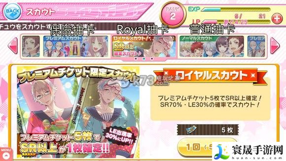 -上面是aichu disk,5个一张50个11张卡,11连一定会有一张保底SR;下面是高级卷,1次1张5次5张卡。