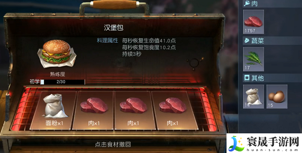 面粉到食材商人获得,肉从动物身上获得,料理属性:每秒恢复生命值40点、饱食度10点、持续3秒。