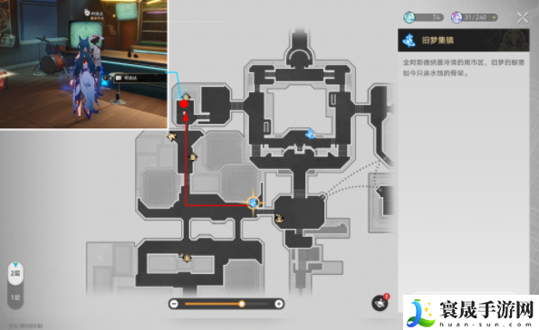 2、然后传送到流梦礁“旧梦集镇”锚点,前往下图标记的位置,找到“柯洛达·星际牛仔”;