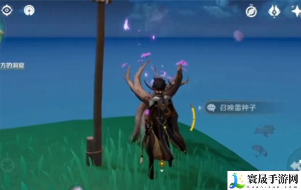 2、飞过去之后我们可以看到这里有一个雷种子,点击拾取。