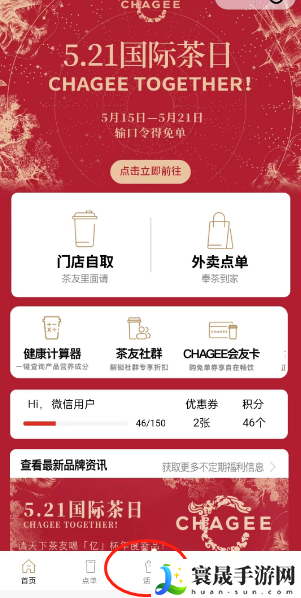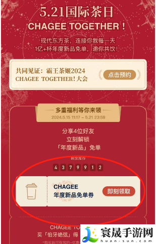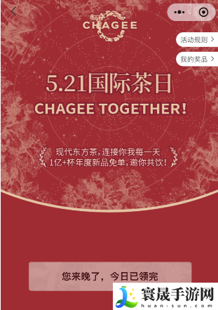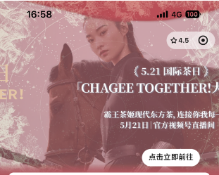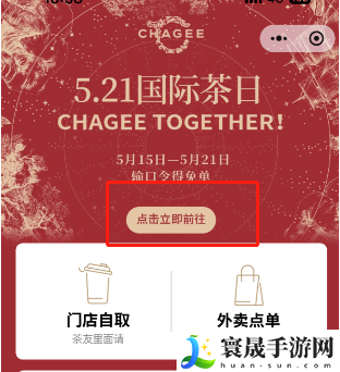 2、在上方的轮播图中可以看到521国际茶日的输口令得免单活动,点击立即前往即可参与;