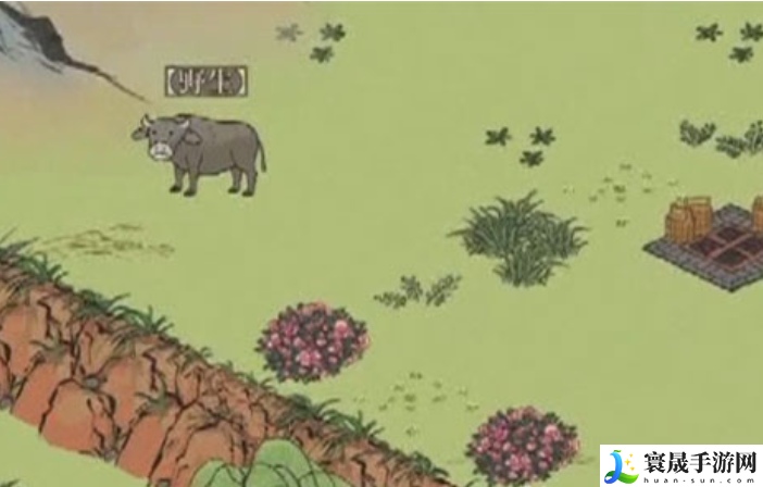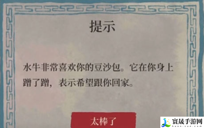 2、然后慢慢靠近这些动物,点击一下动物,如水牛,会出现提示“是否喂豆沙包”,触发小游戏。