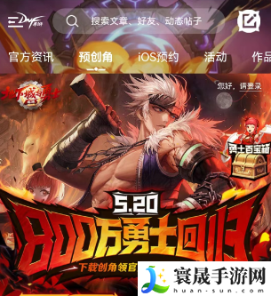 2、在DNF手游频道的顶部,找到【预创角】栏目点击进入。