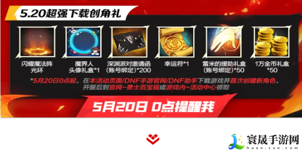 2、从5月20日0点起,在官网/DNF助手预约的用户,在DNF手游官网/DNF助手下载游戏并首次创建新角色。